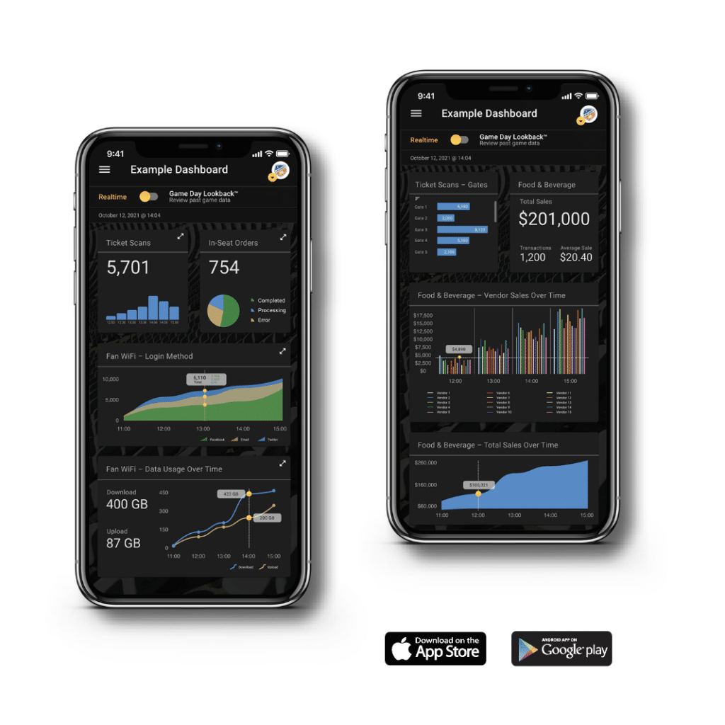 The app delivers FCC and other stadium owners real-time, actionable insight not previously available from a single data source. For example, with Game Day Dashboard FCC operations staff can see a recent uptick in scans at a particular parking lot gate. Seeing this upward trend, more mobile ticket scanners can be quickly deployed to nearby gates in anticipation of the coming guest surge. Similar insights can be gleaned from virtually every data source within the facility, including point of sale, food and beverage, ticket scanners, environmental systems, audio/visual, WiFi, DAS, and much more.